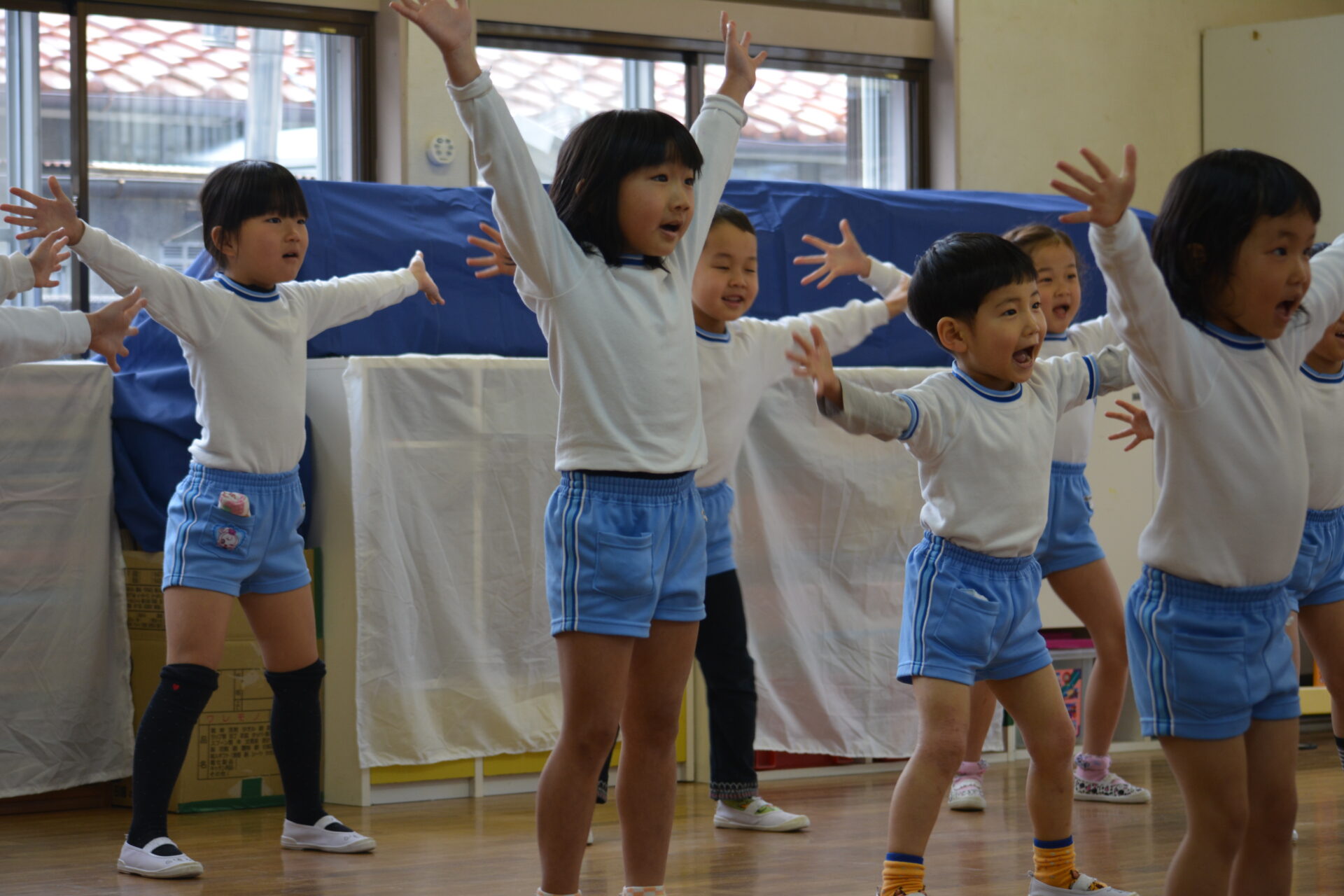 インストラクターの先生の元気溢れる指導は、普段の保育活動の雰囲気から特別な雰囲気に変わる時間です!